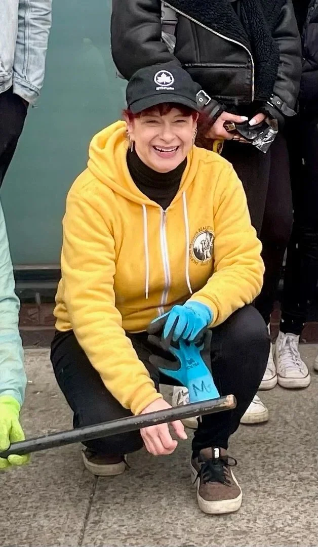 She is a Sanitation Foundation Trash Academy graduate, which helps her lead her co-op recycling and compost education. She has also become a part-time Sanitation Foundation CSA, working with volunteers for cleanups around the City.